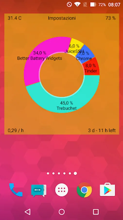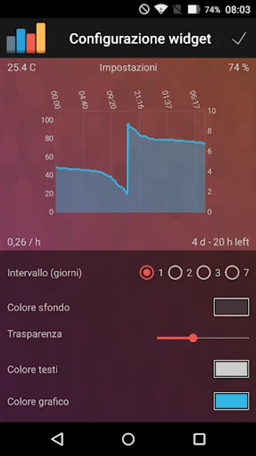 Better Battery Widget Graph puts on your homescreen, the statistics of battery usage of your phone