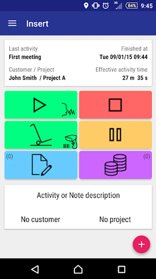 You can also pause an activity, when you have a breaktime or when you are out for lunch, and then take a picture of launch receipt to attach it as an expense to the activity