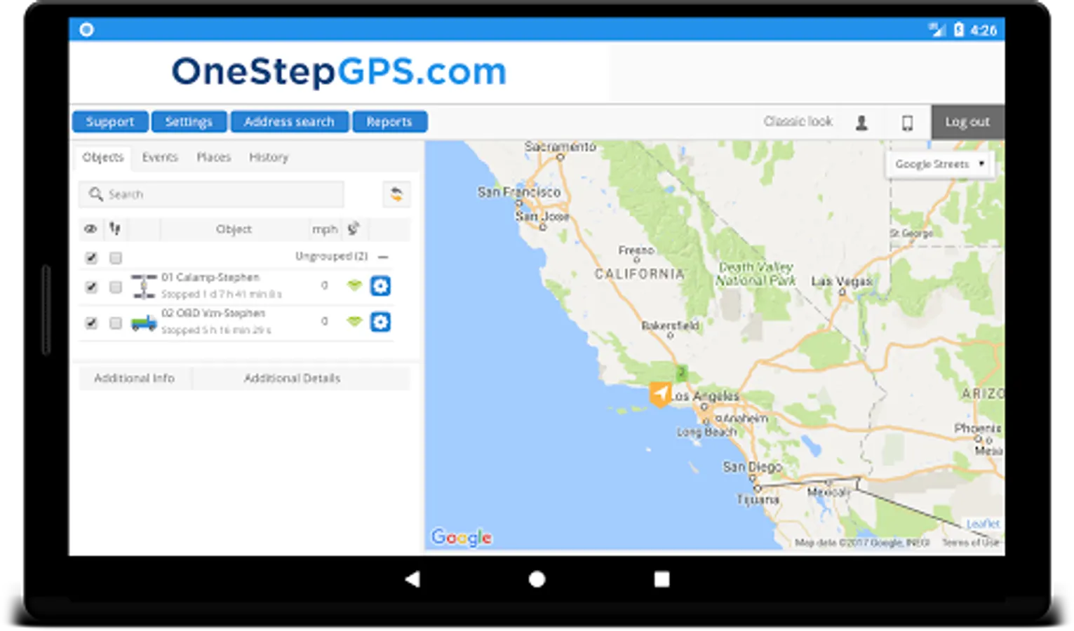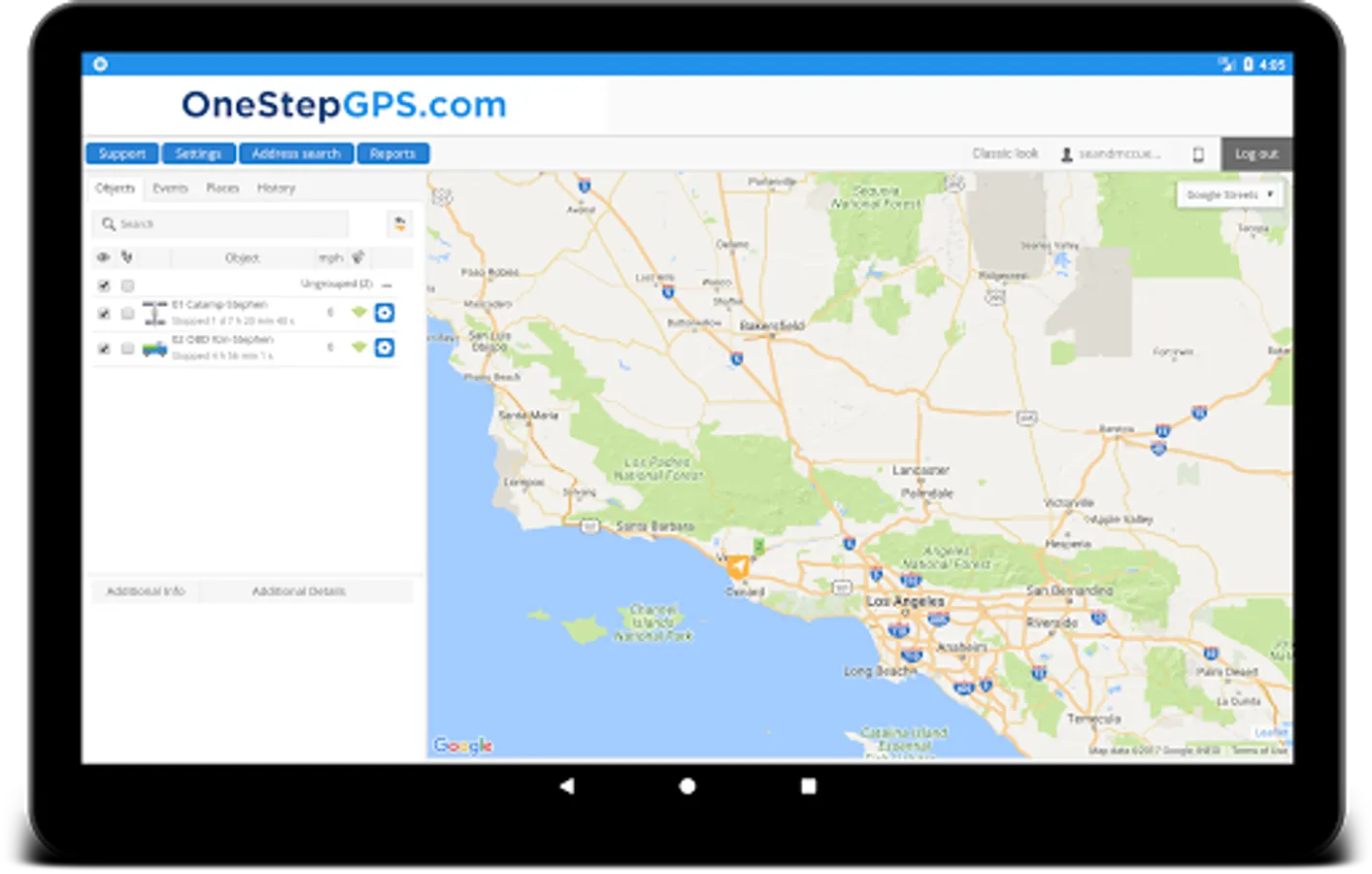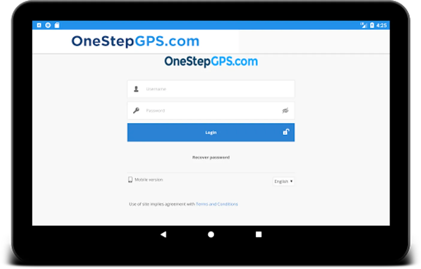 Please Note: Accessing data in the One Step GPS app is only available to users with a valid One Step GPS account. Your One Step GPS user profile determines your basic contact information and the vehicles, and groups you see. Simply use the same user credentials that you use to log into the web version of the One Step GPS portal.