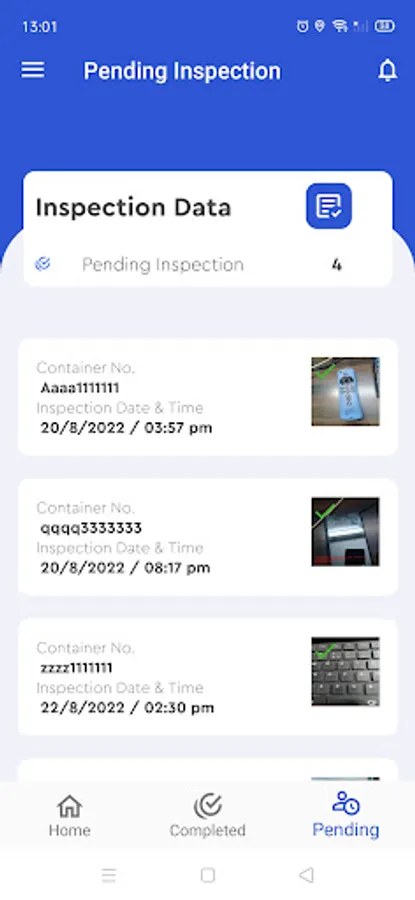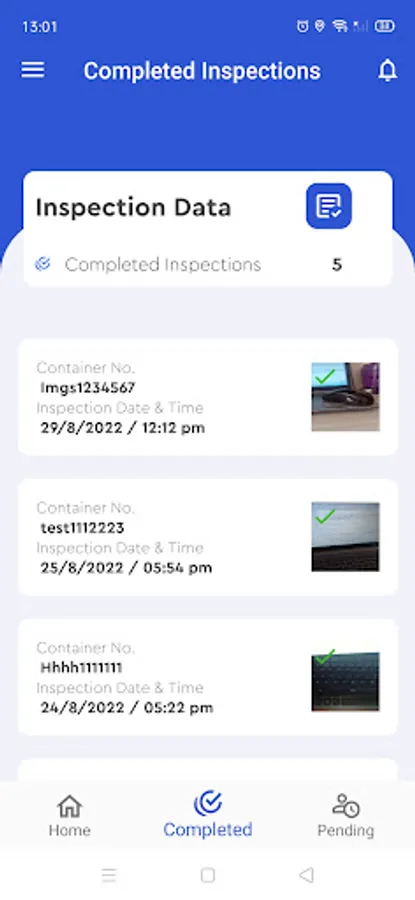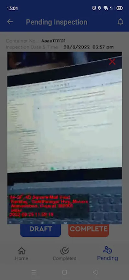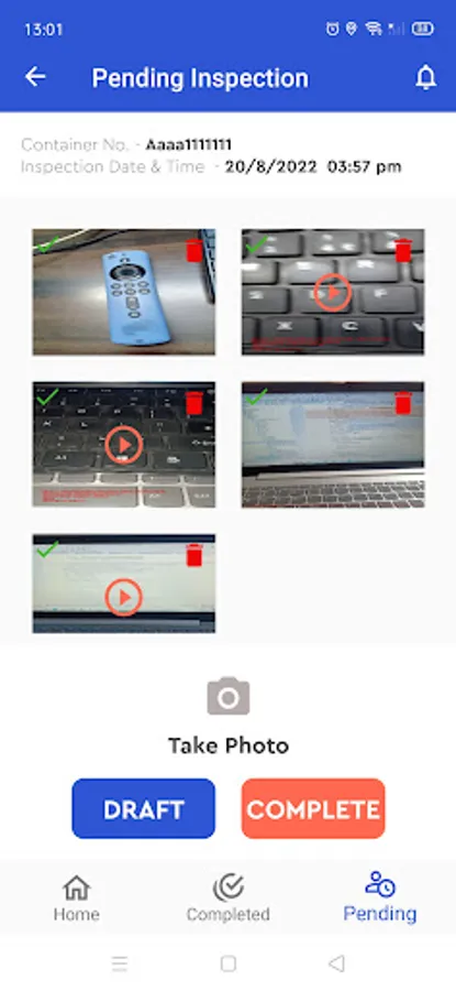 The app keeps a record for pending and completed inspections and the user can reinitiate an inspection and add more loading pictures until it’s submitted.