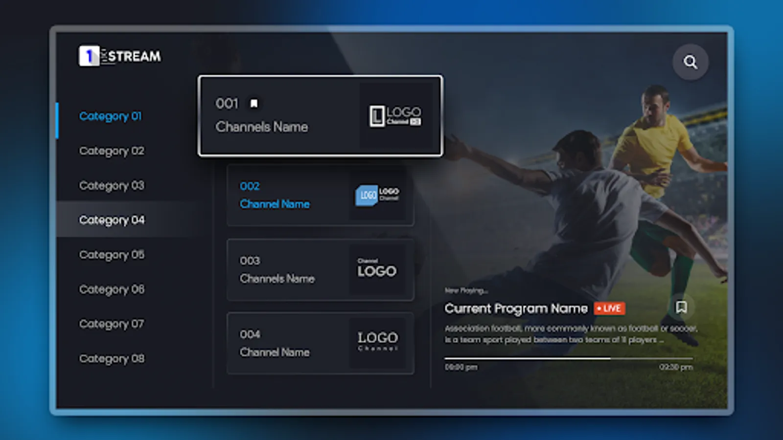 1-Stream Player is compatible with Xtream / OneStream playlist. So you can bring your digital content, add it to the playlist, and enjoy your ultimate IPTV stream player experience.