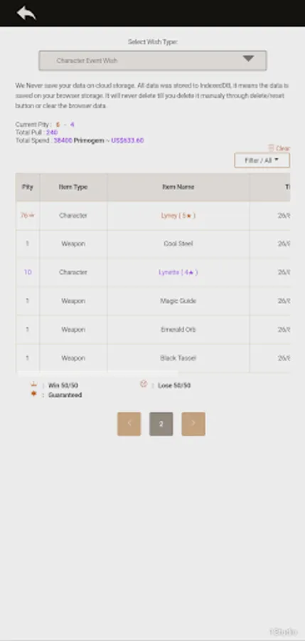 • View estimated cost in USD, Primogems required, Masterless Starglitters earned, and more!
