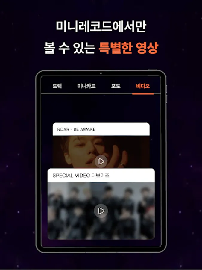 - 구매한 앨범을 앱에 등록하여 아티스트의 포토카드와 포토북, 음원 재생까지 즐겨보세요!