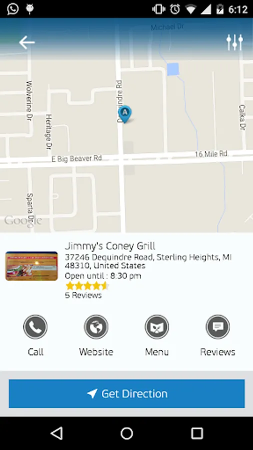 This app includes features such as calling a restaurant directly from the app if the phone number is available and users can also get directions from their current location to a restaurant of their choice by accessing maps using the app.