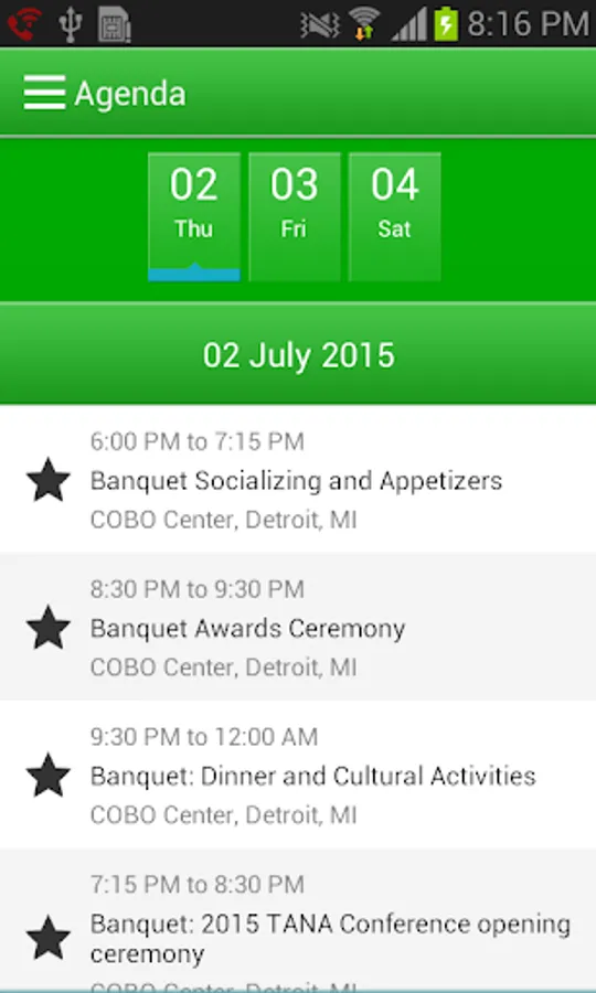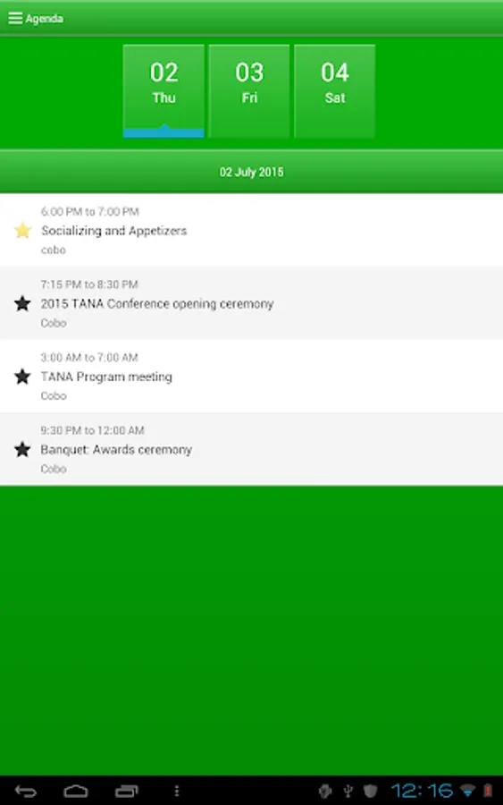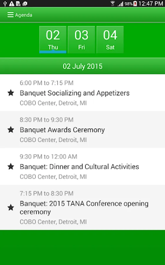 2)Agenda list in the app gives you description about the programs, date and time of each.