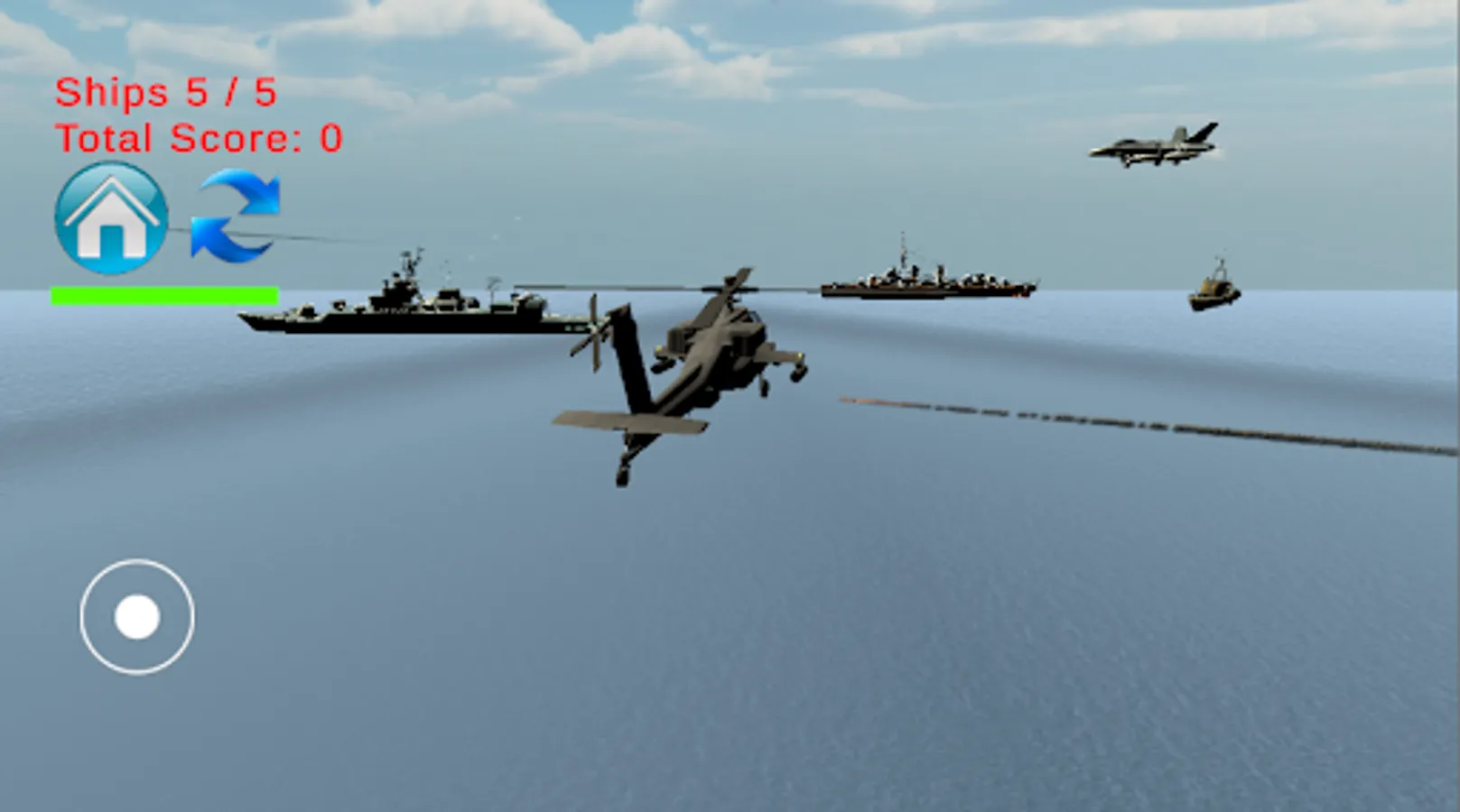 the player has to move joystick to move the plane, avoid missiles shoted on him, to destroy ships you have to press on it, to change airplane direction press on the plane then drag it to favorite direction, collect more point and win the game by destroying ships, it is very detailed and awesome 3D graphics, you can choose from many wonderful options with easy controls.