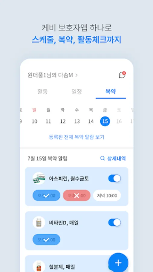 ● Alarm setting - If you set the medication/schedule, etc. that parents often forget, the Care Device will manage it.