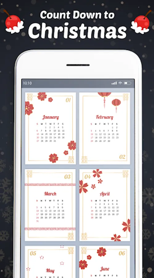 Snowman and delicate snowflakes will enhance your telephone or tablet and set it up for the up and coming occasion. This "Christmas countdown application" permits you perceive how much time has left till X-mass. Simultaneously, you will watch delightful "moving foundations" portraying charming Christmas improvements and images, which you can coordinate with some other moving lock screen backdrop. Your cell phone will gleam in obscurity like a lit Christmas tree so you will be a genuine hit at any X-mas party.With this cool application for young ladies and young men, we can "countdown to Christmas" together, so download "Christmas Countdown Wallpaper" for nothing and don't miss a second!