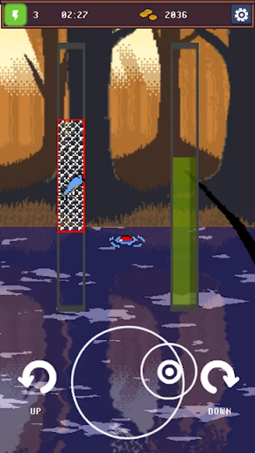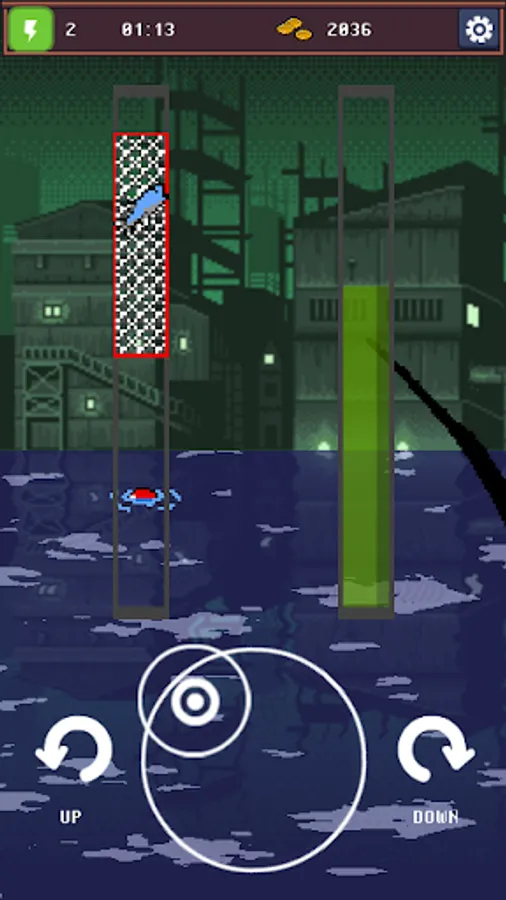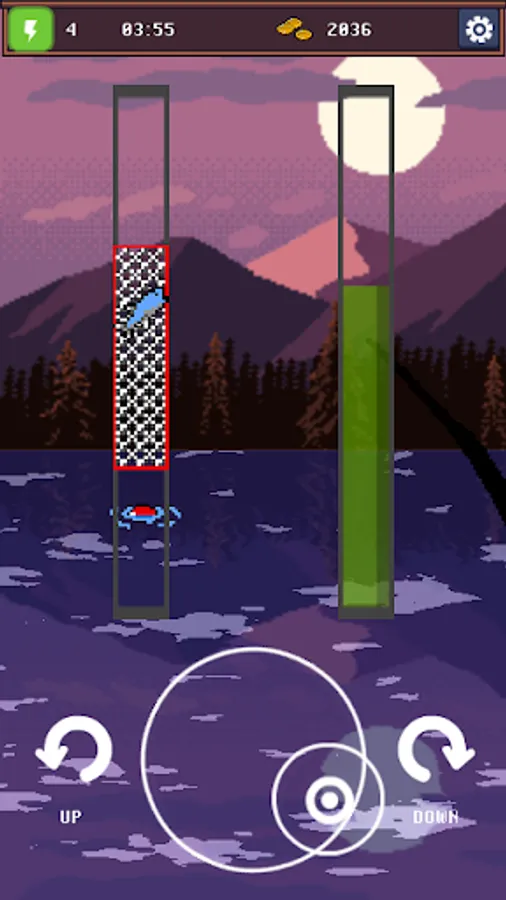 Reel in the fish by keeping it within the net area. Spin left (counter-clockwise) to move the net up, spin right (clockwise) to move the net down.