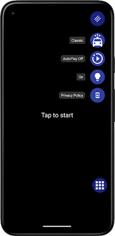 One Touch Studio presents the Police Siren Simulator, a fun app that recreates the sound of a real Police Siren. The Police Siren app has multiple siren sounds that can be toggled through the menu. When tapping the screen, the app will start playing the appropriate police siren, display a visual police pattern, and flash your LED Flashlight if possible.