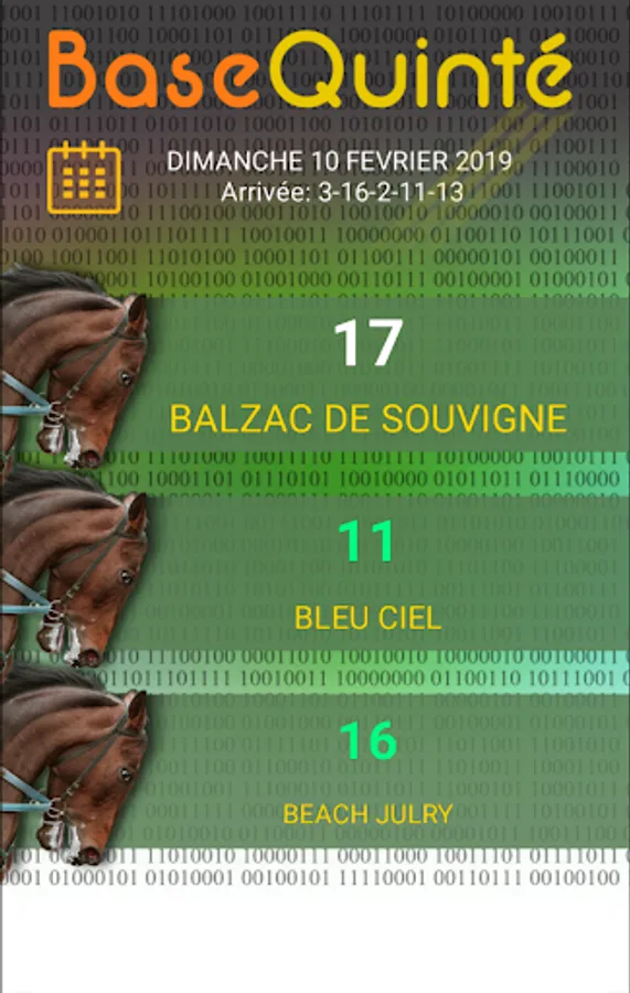 With BASE QUINTE, three theoretical bases of the race are communicated to you every day, with the number of the horse as well as its name and possibly its origin. These are broken down in order of importance.