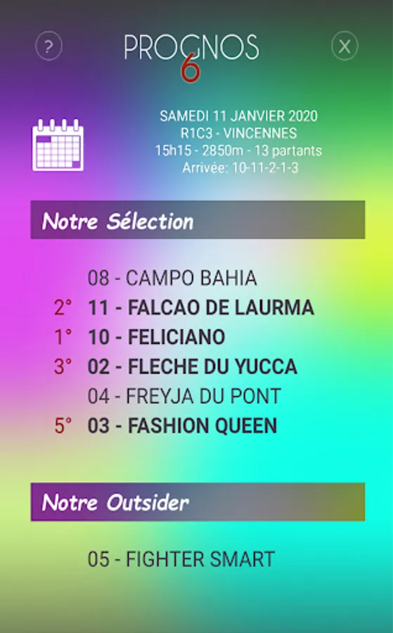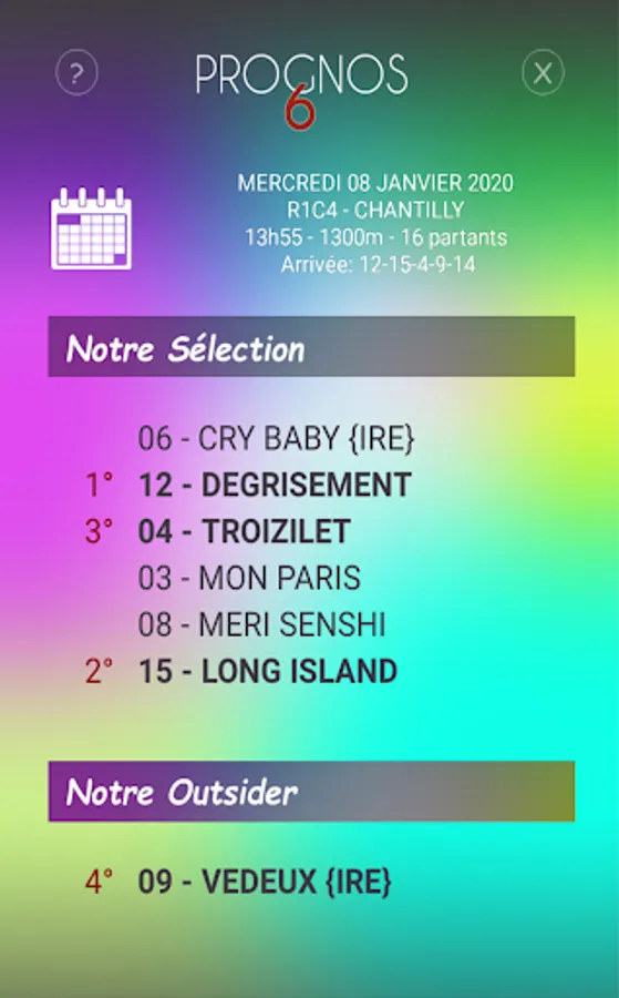 This is why Prognos6 concentrates its prognosis every day on only 6 horses, a formula very suitable for playing all reduced games, or even elsewhere in Tiercé, Quarté, Multi and Quinté. A very serious outsider completes the combination.