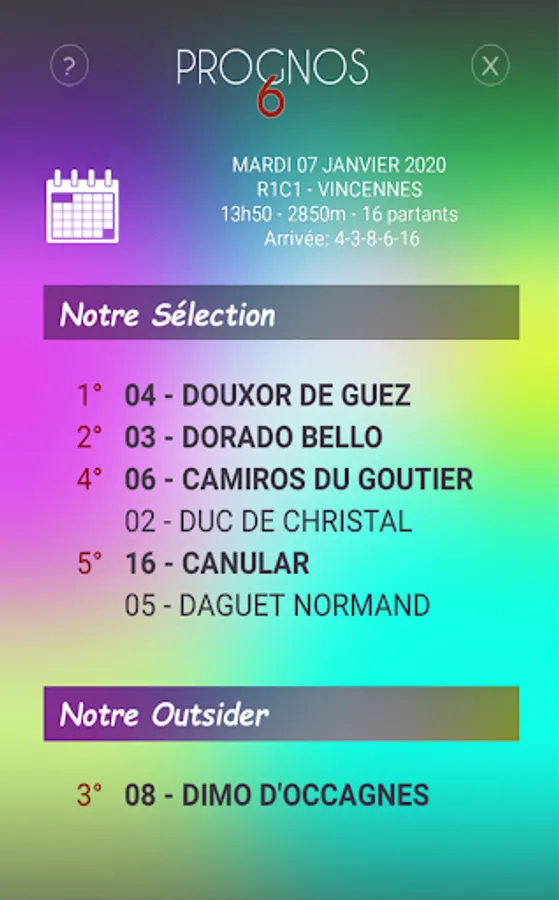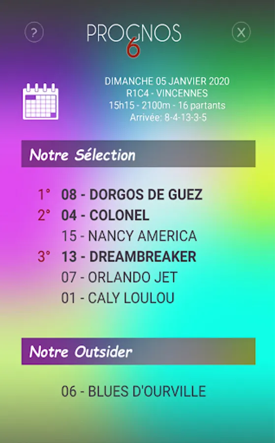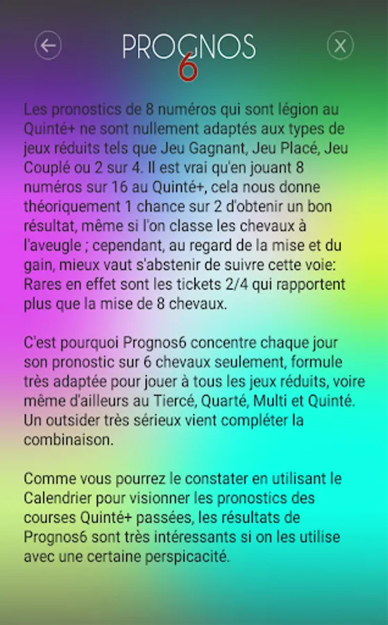 As you can see by using the Calendar to view the predictions of past Quinté + races, the results of Prognos6 are very interesting if you use them with a certain insight.