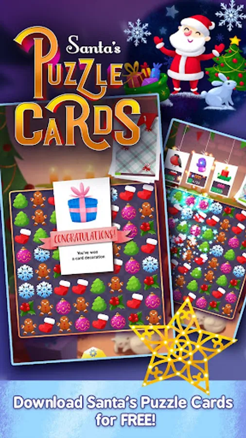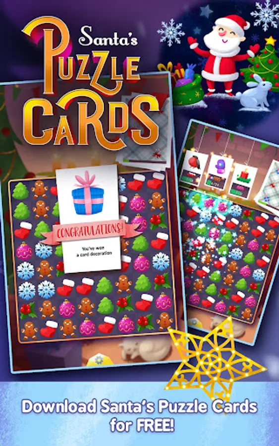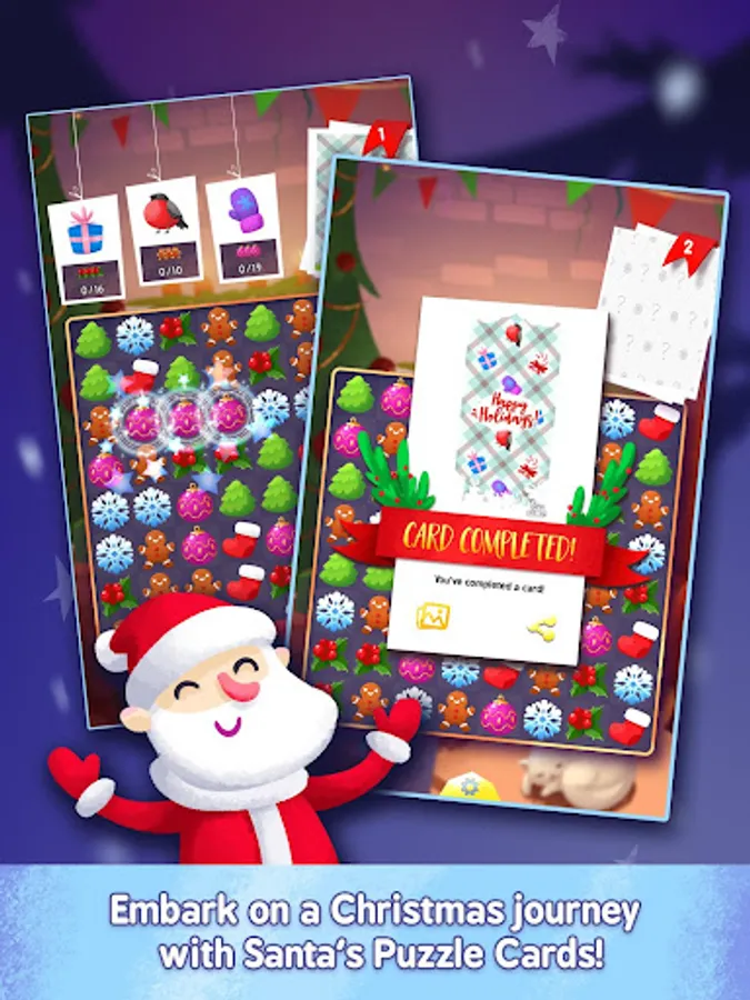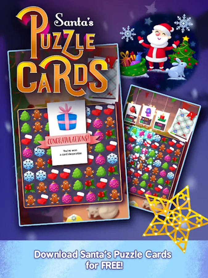 Embark on a Christmas journey with Santa's Puzzle Cards, our new match-three puzzle!