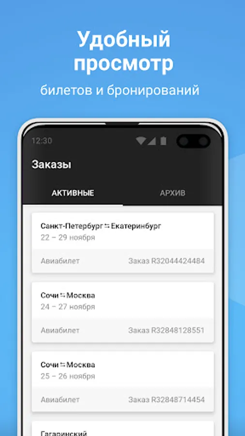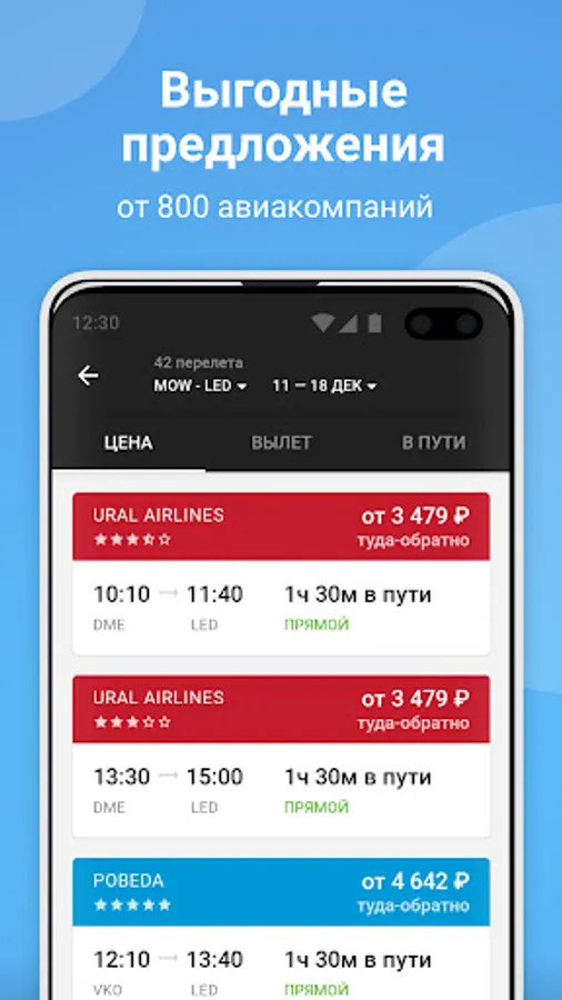 Приобретайте билеты на самолеты от 800 авиакомпаний в мобильном приложении. Ищите выгодные предложения благодаря удобным фильтрам и быстрому поиску.
