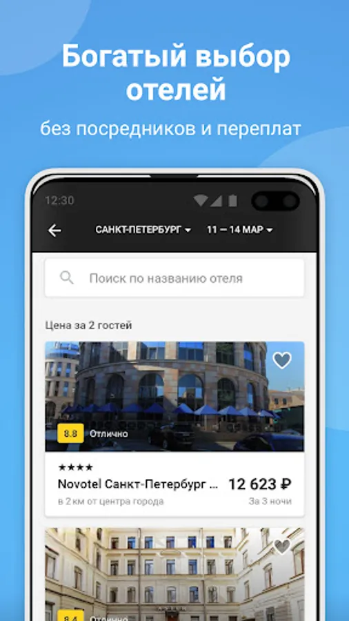 Удобный поиск отелей по рейтингу, отзывам и другие возможности: