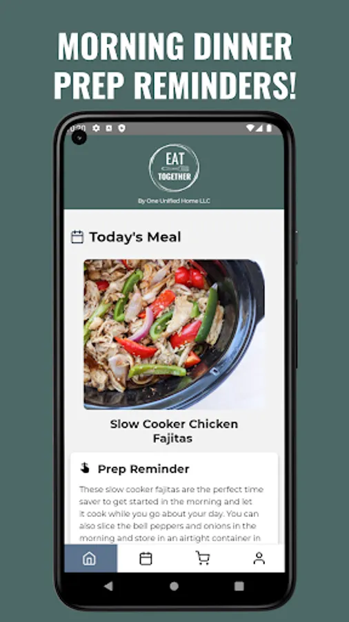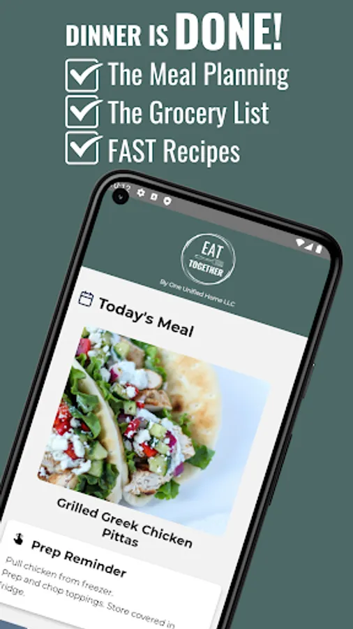 Your meal planner for a healthy life! We do meal planning for families with picky eaters. You don’t have to think about what’s for dinner, we do it for you! We hand-pick the drool worthy healthy eating recipes and organize them into a customizable healthy eating meal plan, and put together the grocery list to save you hours every week so you and your family have more time to do what you want!Our meal planning application triggers reminders to make sure you don’t forget to pull something out of the freezer or chop the veggies BEFORE everyone gets hungry! The daily reminder is the first thing you see when you open the meal planner app each day, so you don’t forget!