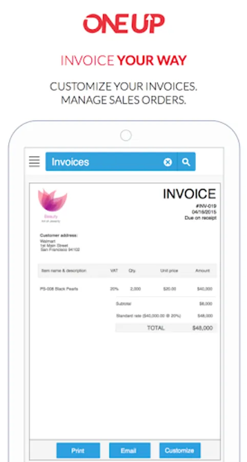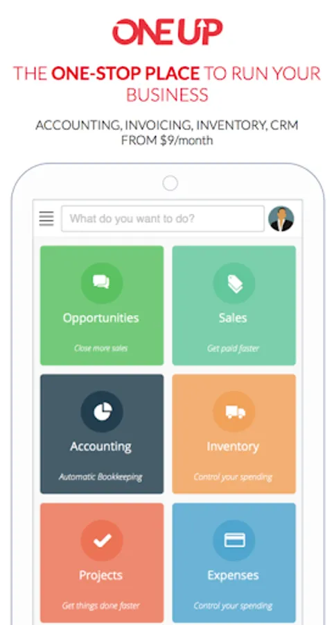 OneUp is the ONE-STOP mobile app to run your business. All-in-one invoicing, accounting, inventory, CRM and expenses.