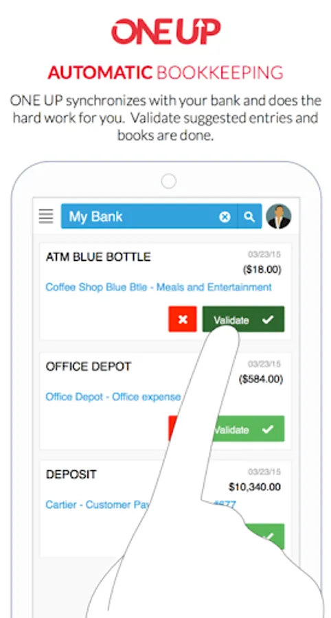 AUTOMATIC BOOKKEEPING - Sync your bank to OneUp Accounting for automatic bookkeeping. Validate suggested entries and your books are done.