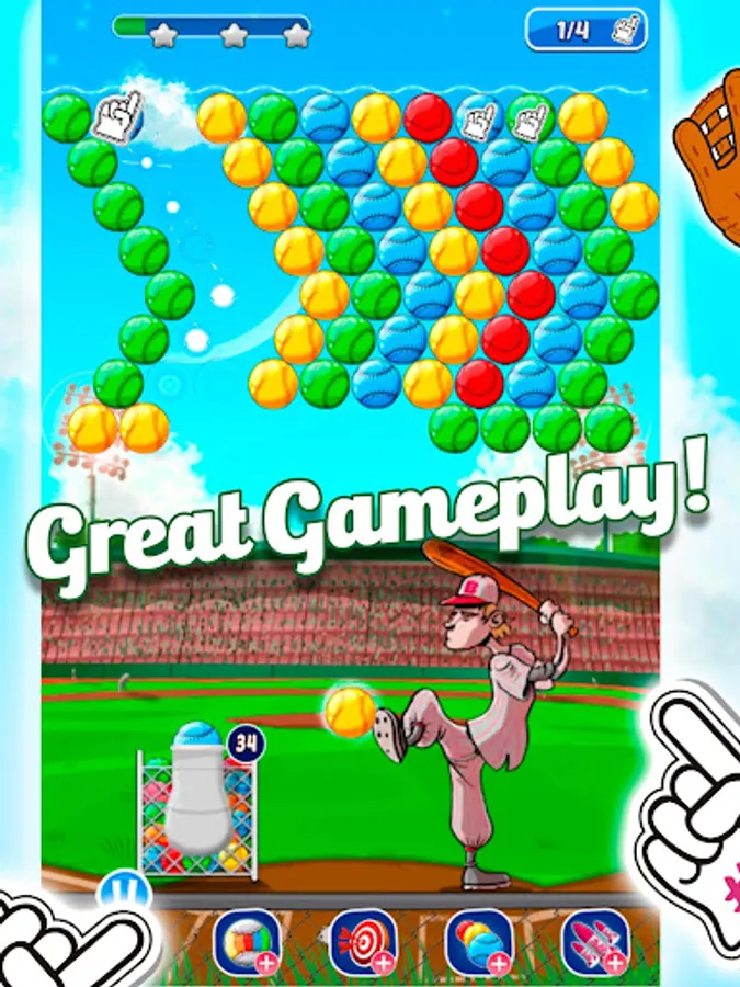 Baseball Bubble Shooter is a classic bubble match 3 game. Pop, tap and tilt your way through over 300 addictive bubble puzzles with excitement and packed with adventure!