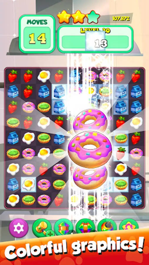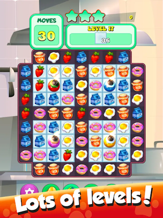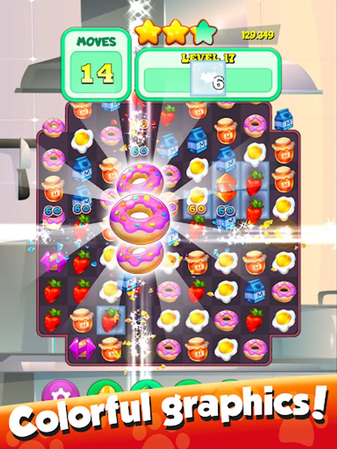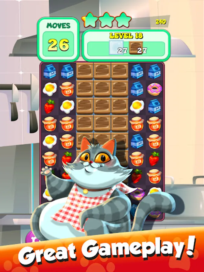 Greedy Cat Match 3 is a relaxing game. The colorful graphics and calming music will help you to relax and de-stress.