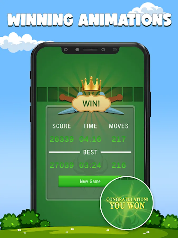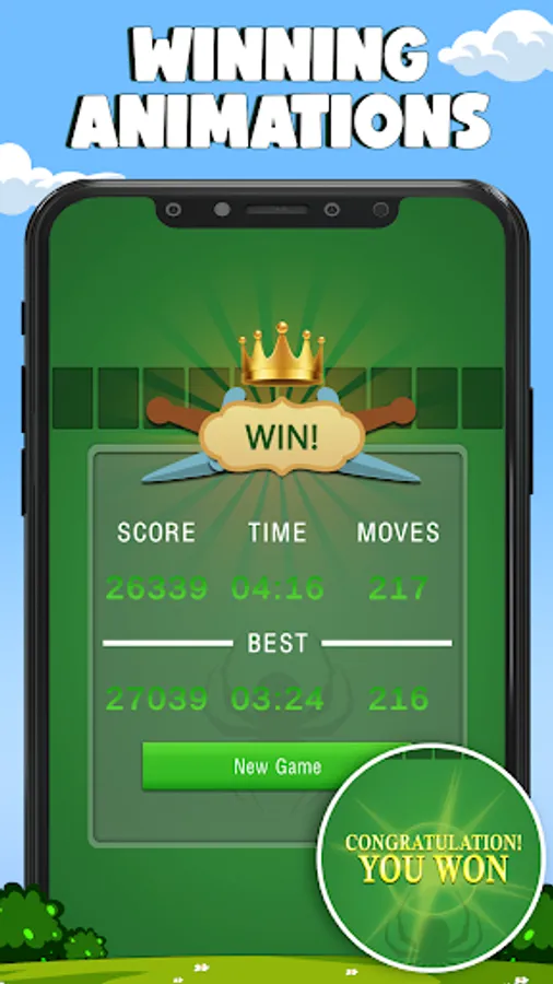 - Different levels of difficulty: 1/2/4 suits