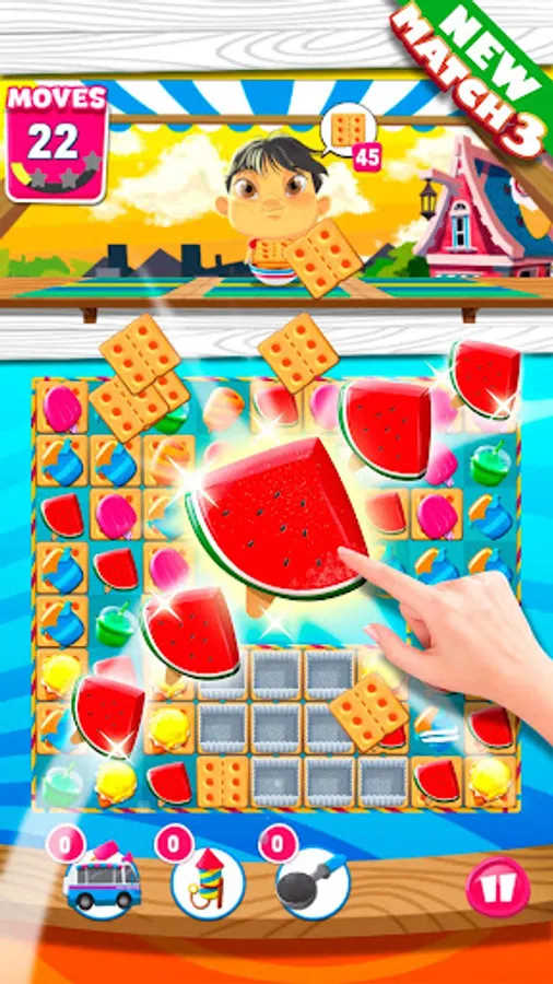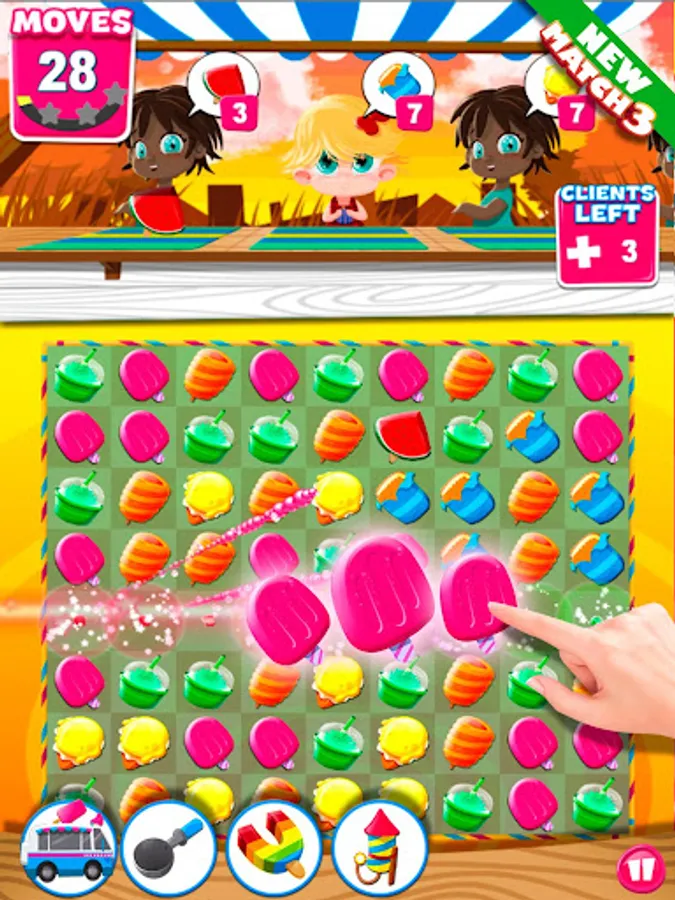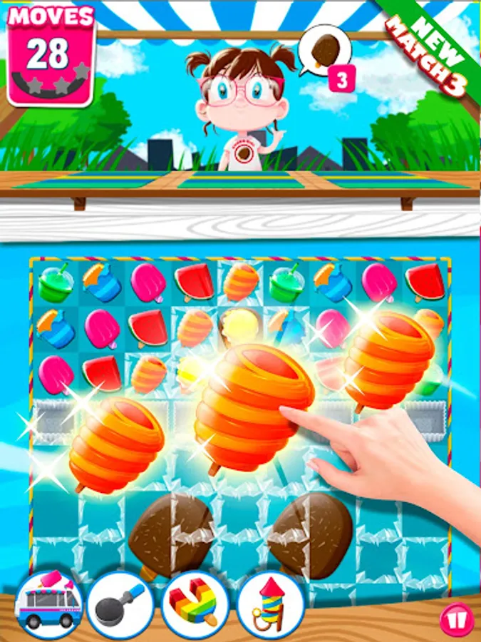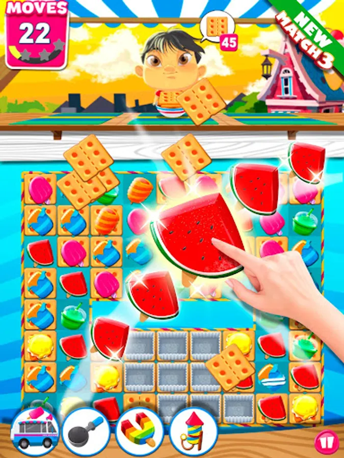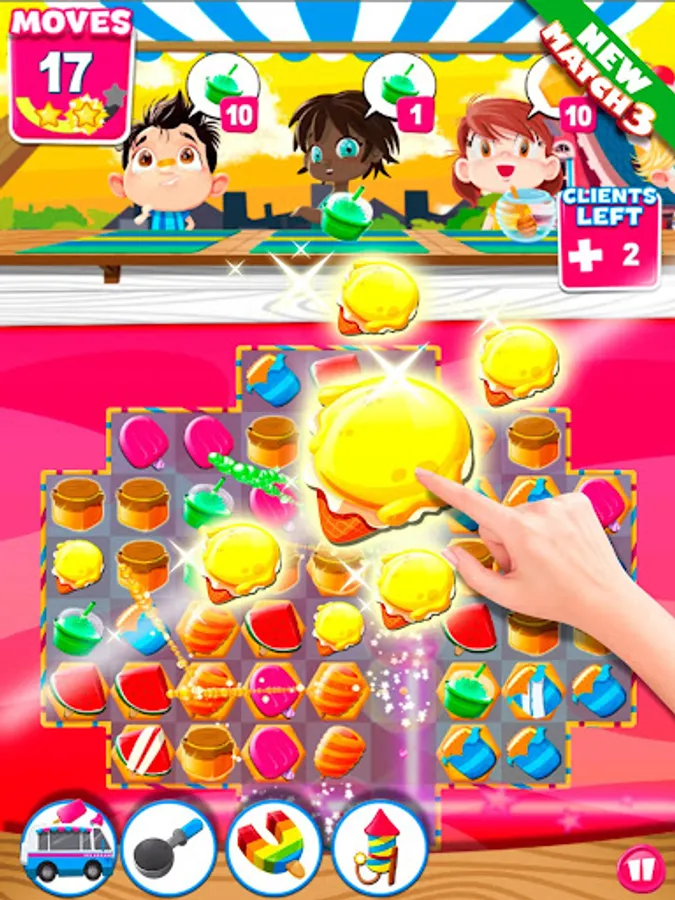- Solve match-3 puzzles to remove cookies, ice cream, and candy from the screen.