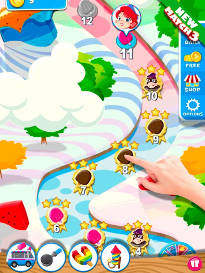 The fun and free Ice Cream Match 3 free game is loaded with amazing features: