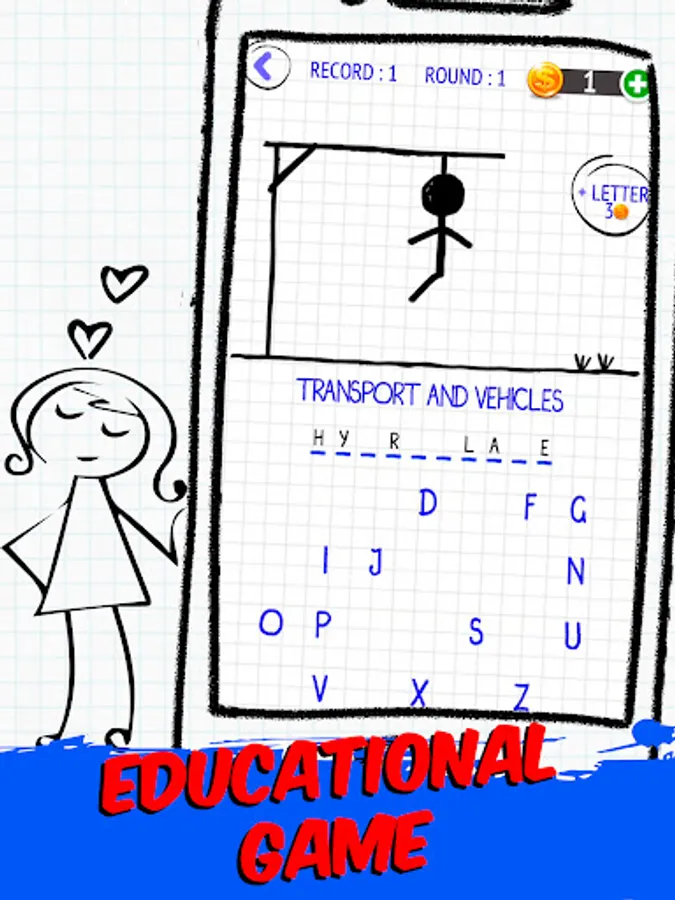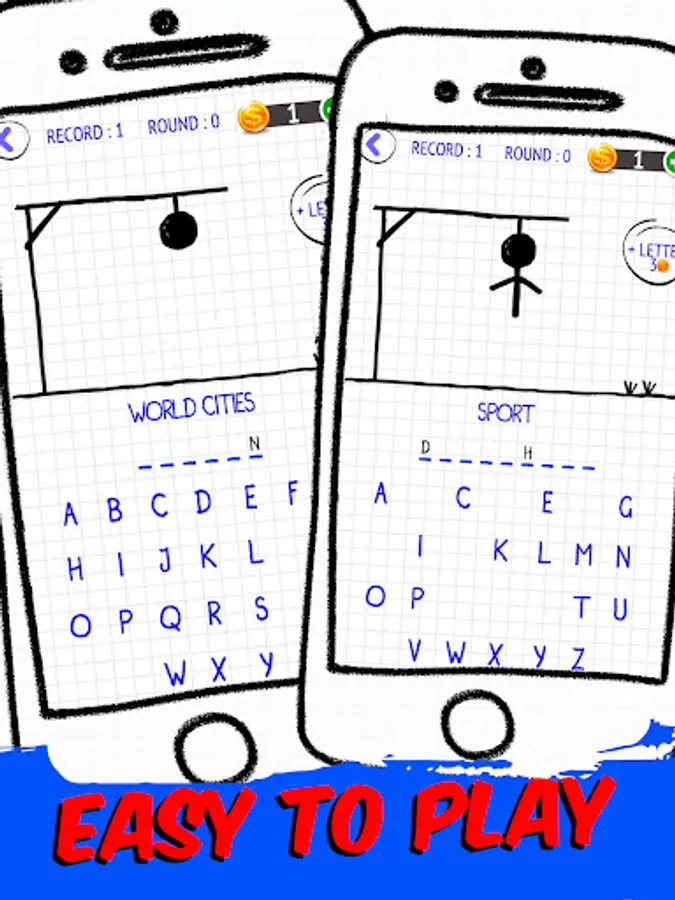 Enjoy the hangman game on your mobile or tablet! This gallow classic game is suitable for everybody, especially for those adults who want to practice their language skills and vocabulary or learning new words. The classic hangman for your device.