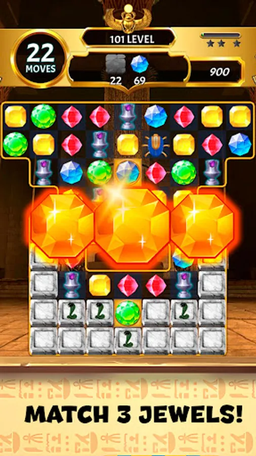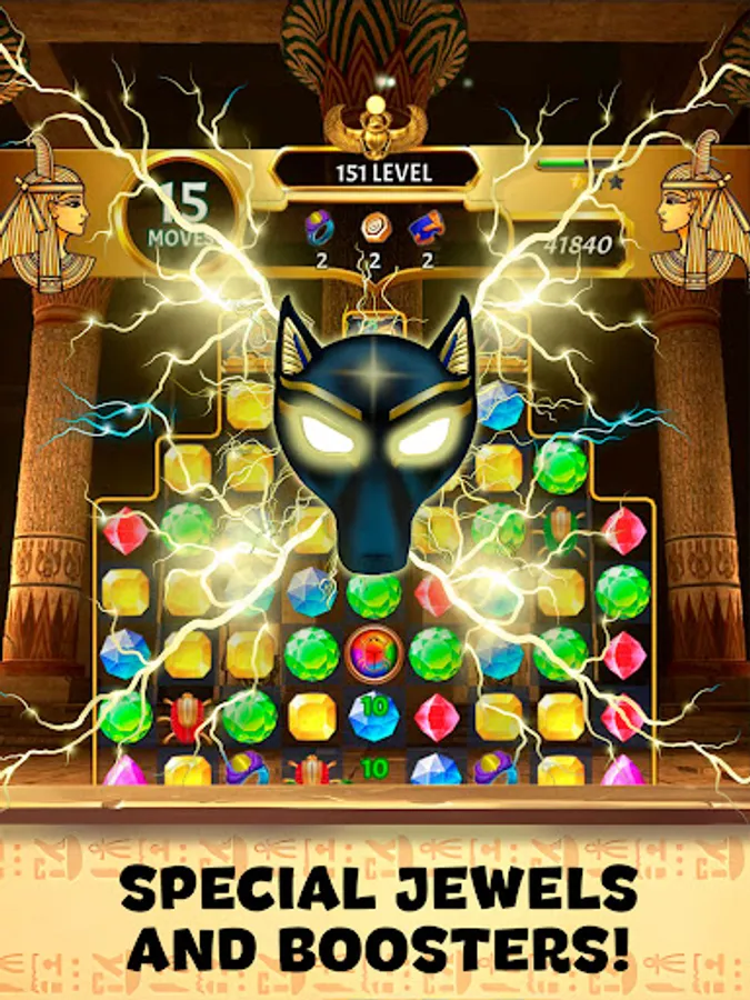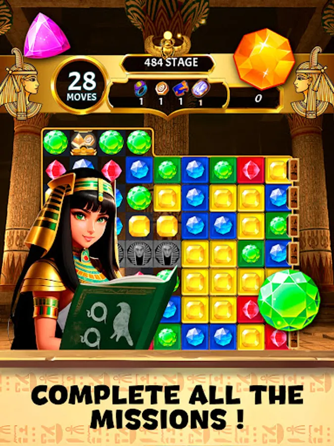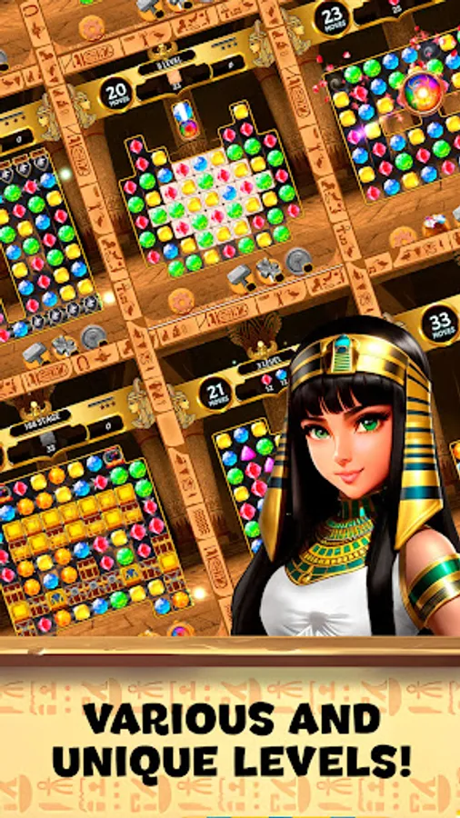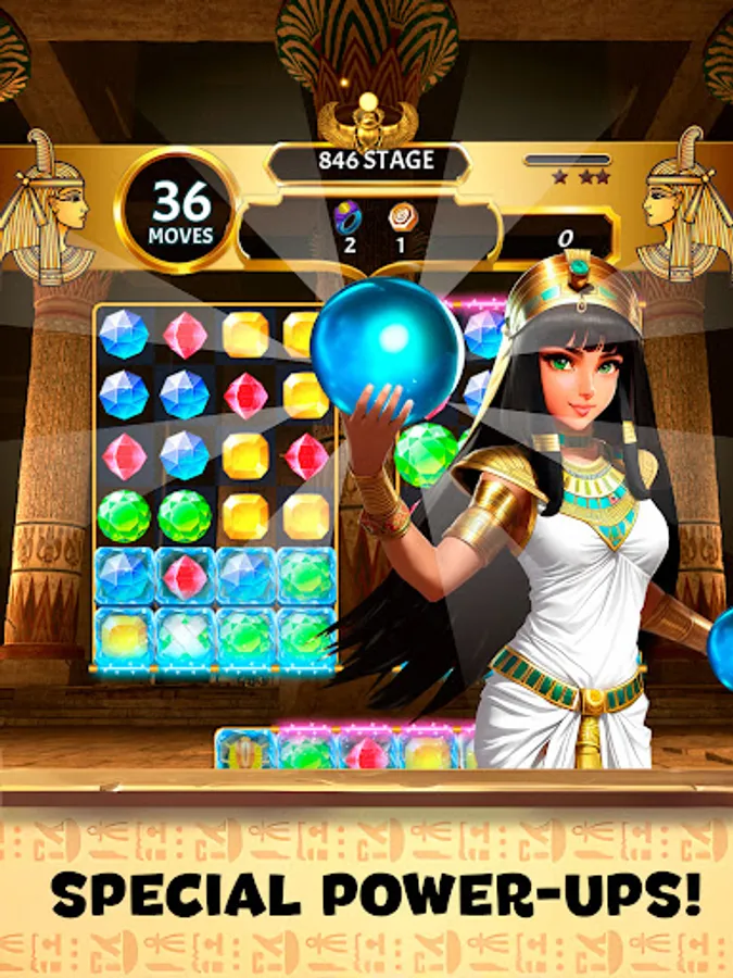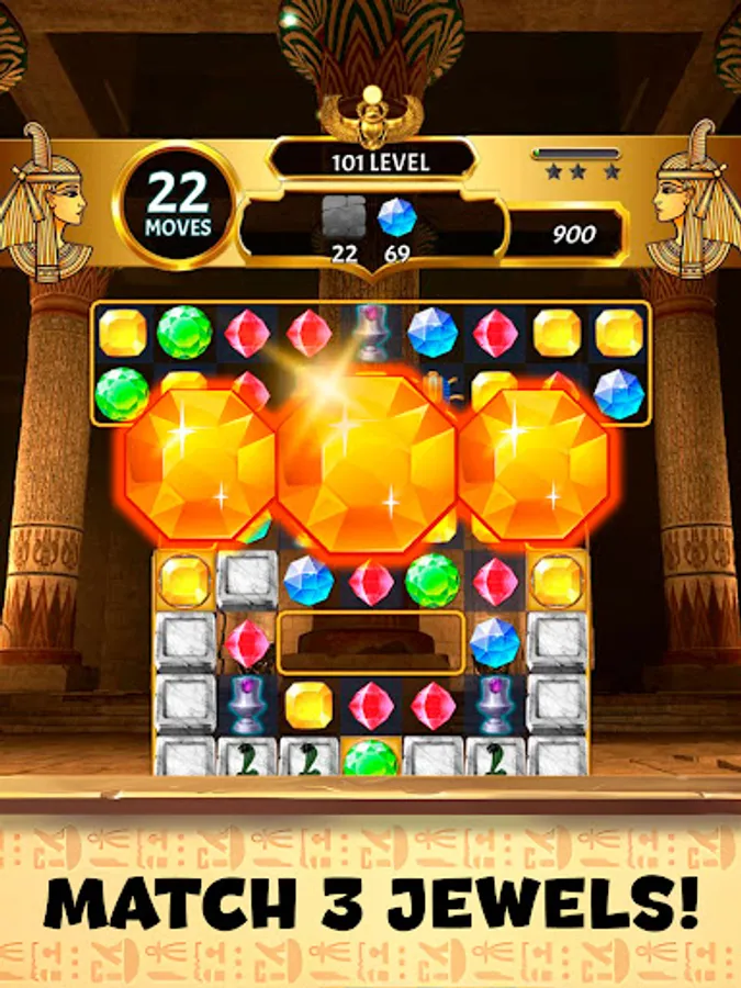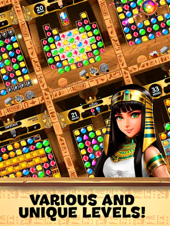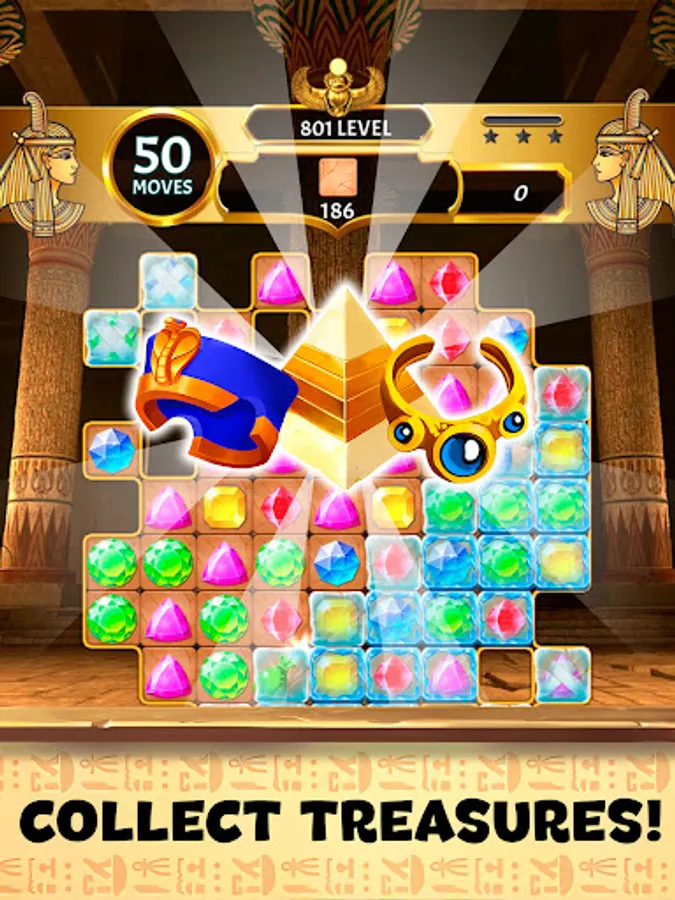 🌟 Mystical Power-Ups: Harness the power of special gems and amulets inspired by ancient Egyptian icons. Trigger impressive power-ups to clear obstacles, shatter challenging patterns, and enhance your gem-matching prowess.