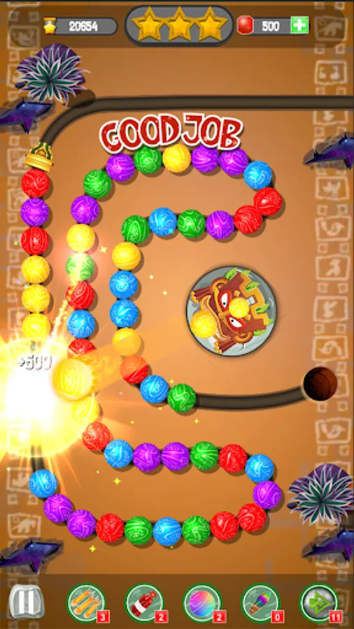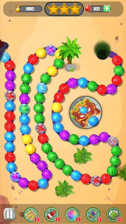 In this game, you find yourself in ancient civilizations, facing an array of colorful marbles rolling along intricate tracks. Your task is to aim and shoot marbles from the launcher, strategically matching and eliminating them before they reach the end. With precision and quick thinking, you must create combinations of three or more marbles of the same color to make them vanish and prevent the marbles from reaching the exit point.