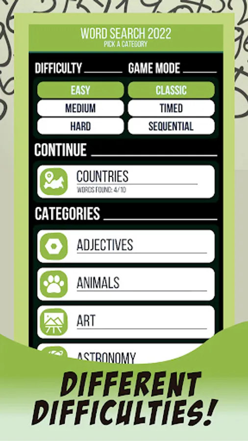 What sets "Word Search 2023" apart is its dedication to providing an exceptional word puzzle experience. The game's sleek and intuitive interface ensures seamless gameplay, allowing you to focus solely on the puzzle-solving action. With stunning visuals and captivating sound effects, you'll be fully immersed in the world of word searching.