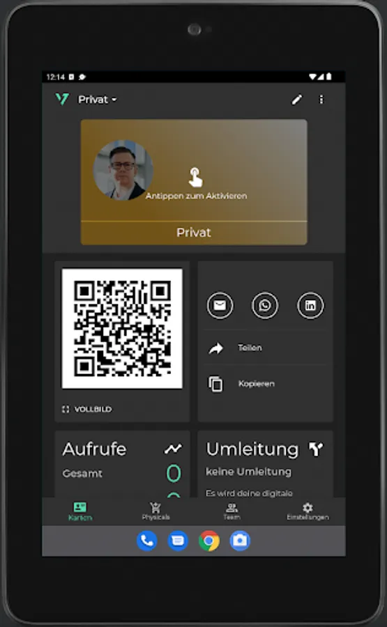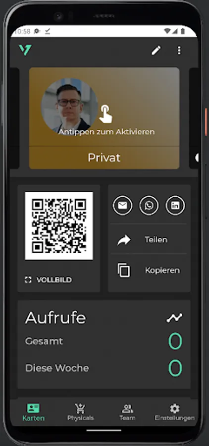 Create multiple virtual digital business cards, suitable for any occasion. With one click you can choose which business card to present.
