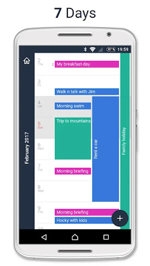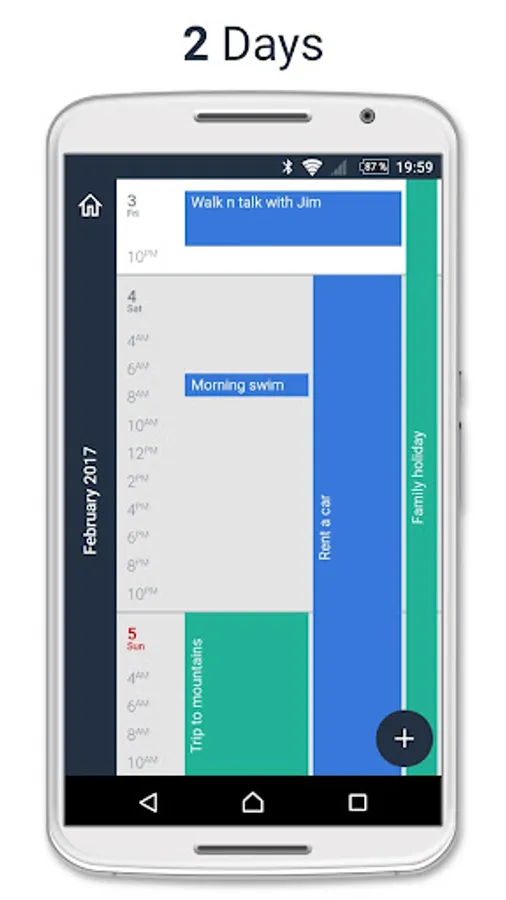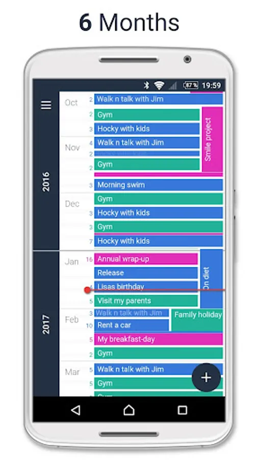 • Advanced mathamatics positions your events perfectly so that everthing looks clear whatever period of time you are looking at.