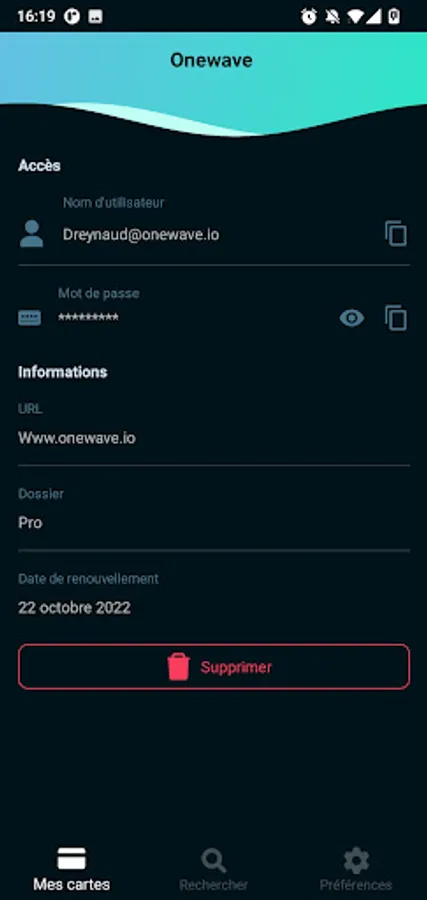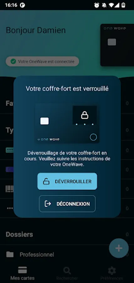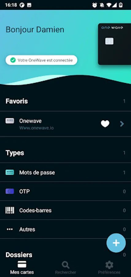 Connect your OneWave to the app and configure it. The application creates the Bluetooth bridge between your phone and the OneWave card for the use of the different authentication standards offered by it.