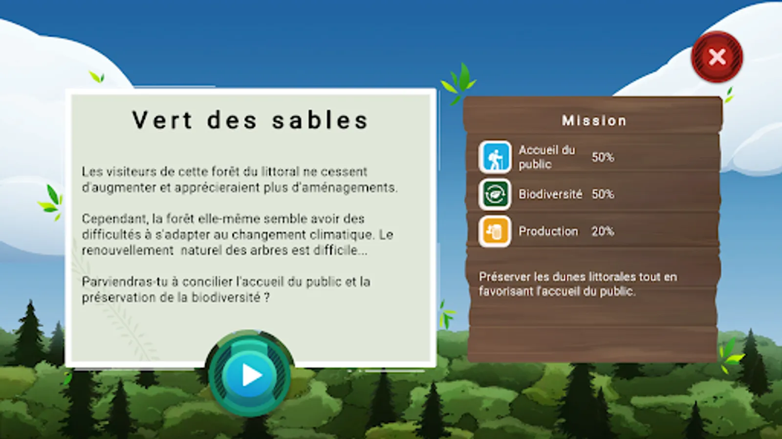 This game is an opportunity to experiment with solutions based on scenarios drawn from the real experience of foresters. Once all the missions are successful, the game offers the possibility of spending half a day with an actor from the forest-wood industry!
