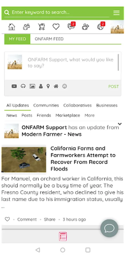 Built on a social framework, it harnesses the power to gather producer types into collaborative groups at a state, national and global level. Combined with all the tools and functionality needed to effectively and efficiently engage and communicate, ONFARM is a powerful network that can enable and unite our agricultural industry to make it a strong, coordinated and innovative body of producers who are the representatives of our land and food.