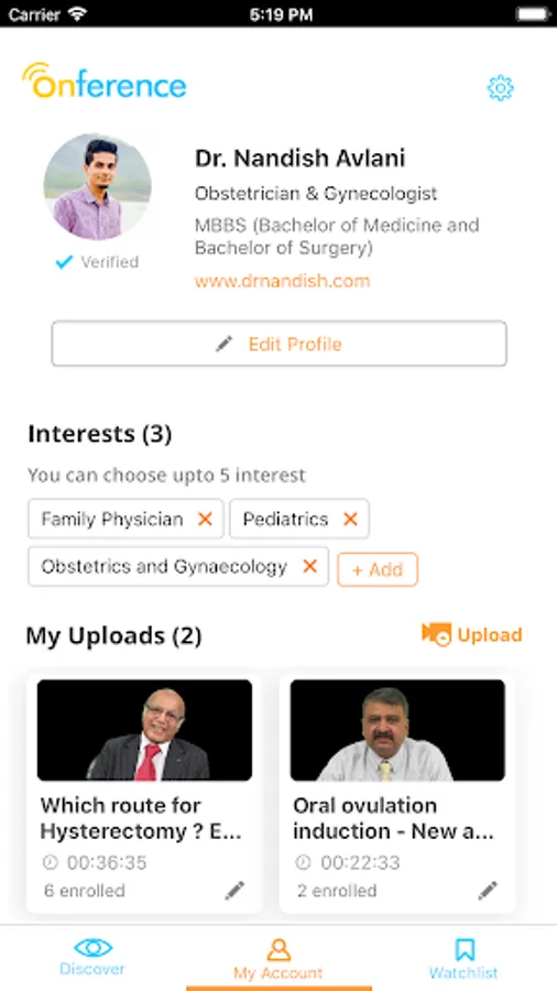 4. Onference allows you to create and upload your own videos and share your knowledge with other doctors.