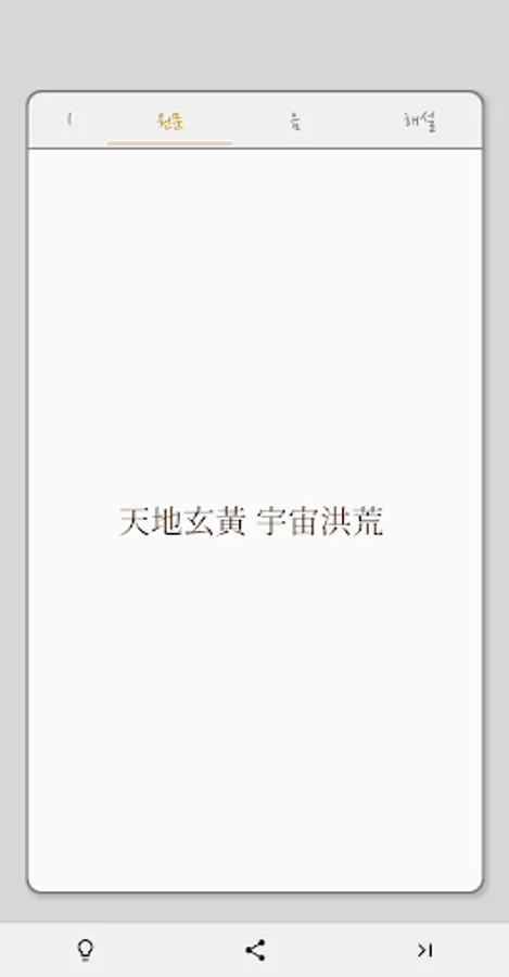 The Thousand Characters is a book written by Zhu Xing Temple under the command of Emperor Wu of the Yang Dynasty during the Northern and Southern Dynasties of China. It starts with 'The Current State of Heaven and Earth' and ends with 'Eonjaehoya'. Also, from the Tang dynasty, it spread radically and several editions were made, among which the representative one is Jinchocheonjamun written by Wang Jiyeong, the seventh-generation descendant of Wang Huiji.