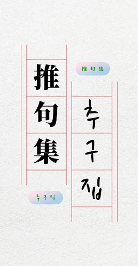 Chugujip was one of the textbooks that students studied before entering the advanced stage after passing through the basic stage after learning the Cheonjamun, Sasosohak, and Hunmongjahoe when students were learning to read in the old days at the Seodang. It is a collection of poems written and consists of a collection of poems in five words. The author is unknown, and contains old proverbs, satires, humor, and sayings. It was a textbook for elementary school in the Joseon Dynasty that was compiled with the purpose of cultivating children's emotions and developing thinking skills, as well as improving their understanding and writing skills by learning concise good poems. This is a book that can learn the wisdom and wisdom of the people and can be used lightly by anyone with a happy heart.