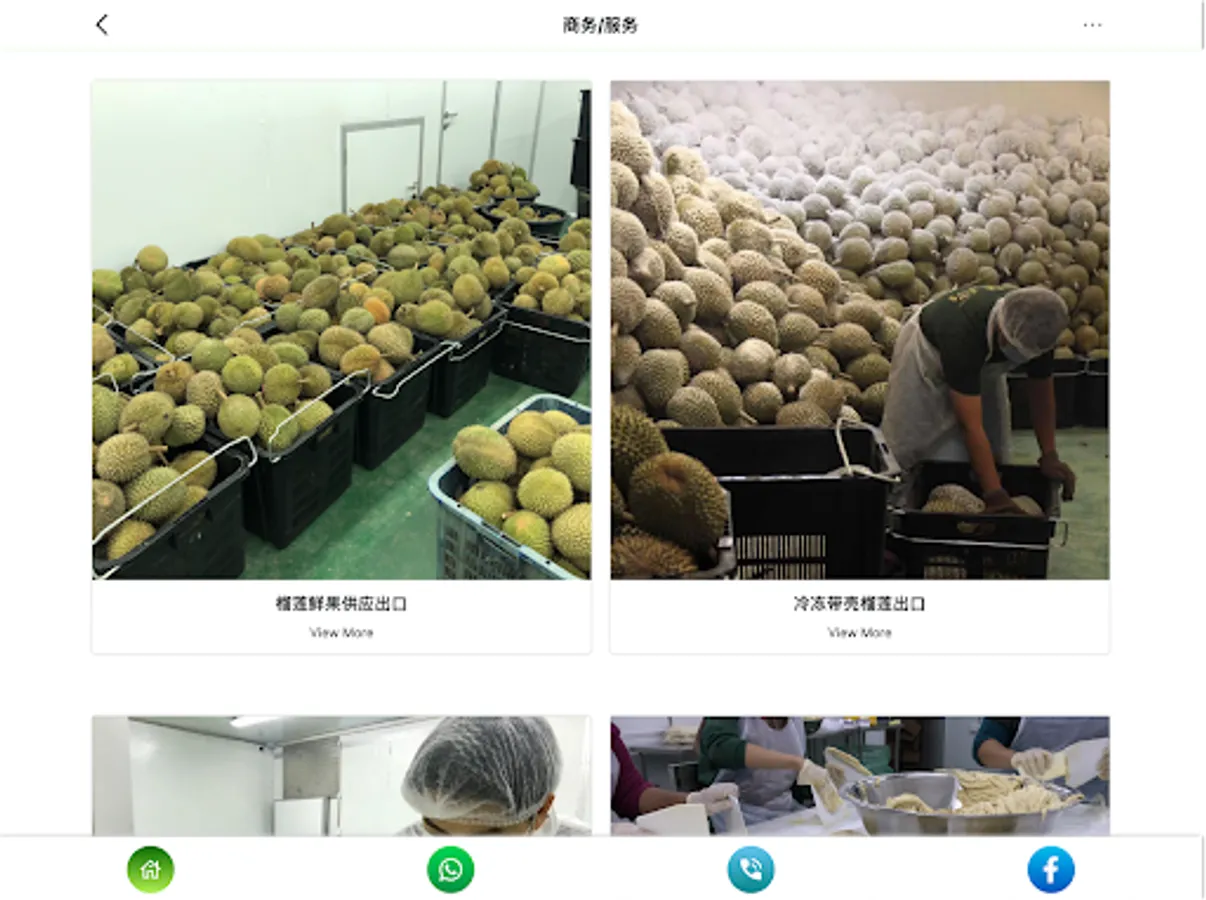 除了供应新鲜榴莲于本地市场,天翔控股有限公司同时也设有工厂加工处理包装榴莲,以冰封带壳榴莲,榴莲果肉和榴莲果泥形式出口到中国、香港、新加坡和迪拜等国家。
