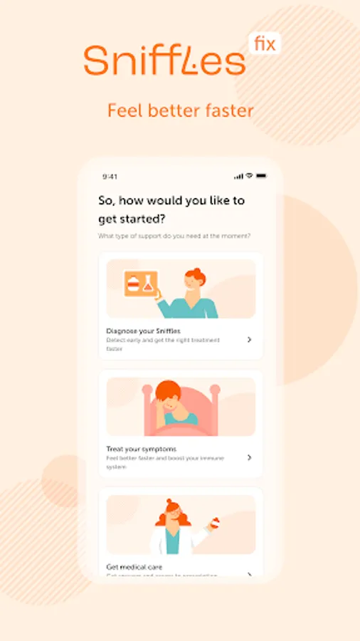 Sniffles by On/Go is your instant solution to help you, your family, friends, colleagues and loved ones feel better much faster. Sniffles provides quick access to highly effective treatments and trusted medical experts here to help you diagnose, treat, and fix sniffles rapidly.