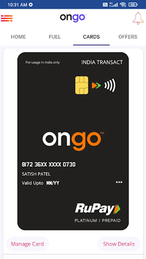 Consumers can now use the Ongo app and get a Rupay prepaid card and Ongo fuel tag for contactless fueling. Ongo card provides users the convenience of shopping, e-commerce transactions, fueling and payments.