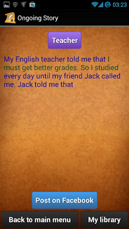 All the stories you have written are stored on your phone and you can continue each one of them from your library. You can also share your stories on Facebook so your friends can enjoy them too!