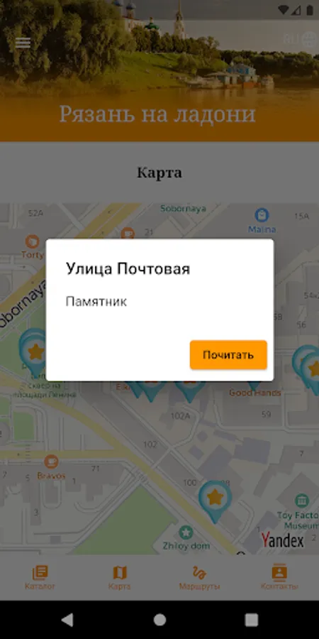 Это приложение поможет вам узнать Рязань с разных ракурсов. Путешествуя виртуально по карте и в живую, вы дополните свои впечатления и знания.