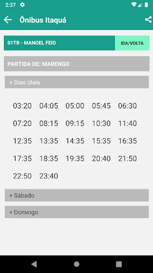 Ônibus Itaquá brings to Itaquaquecetuba a simple and intuitive application to check the circulation schedules of each bus line.