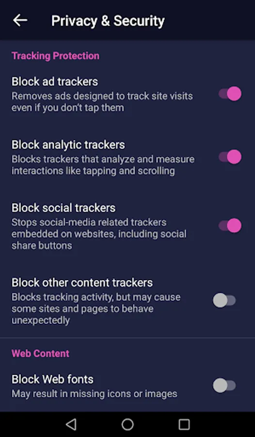 Onion Search Engine Browser automatically blocks a wide range of online trackers and it's very easy erase your history, passwords and cookies, so you won’t get followed by things like unwanted ads.