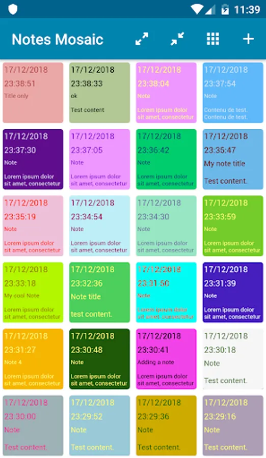 Thumbnails show the date of last modification, as well as the title and text content when possible.
