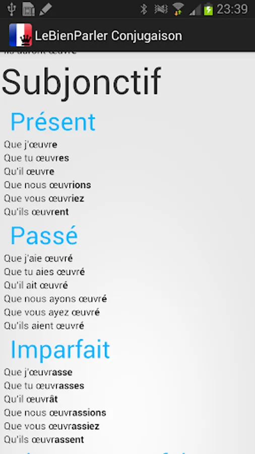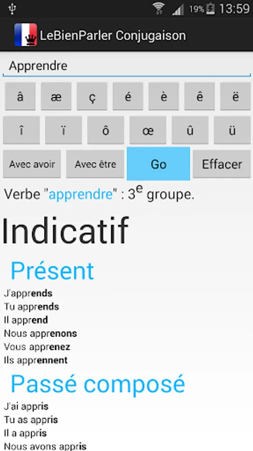 Conjugate free all verbs of the French language.