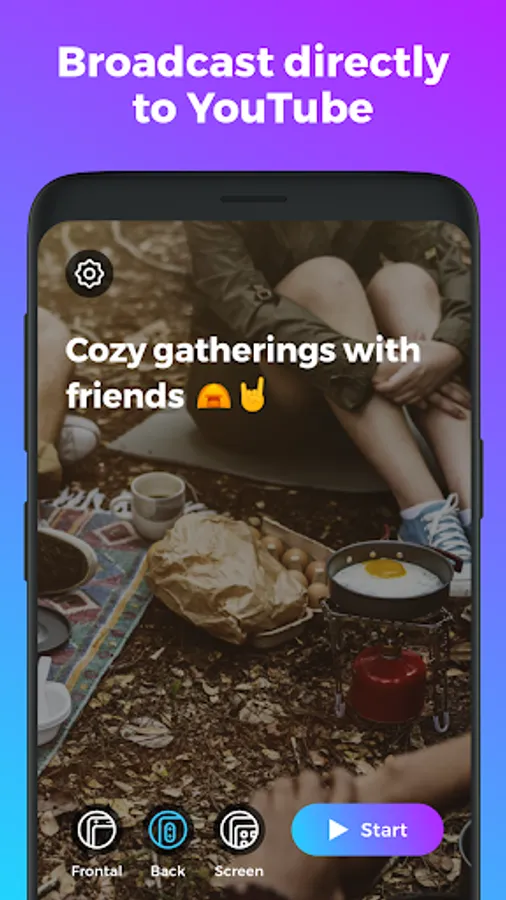 An app that allows you broadcasting live videos to your Youtube channel in one click and share it to your friends!